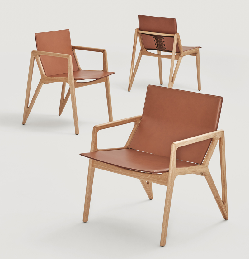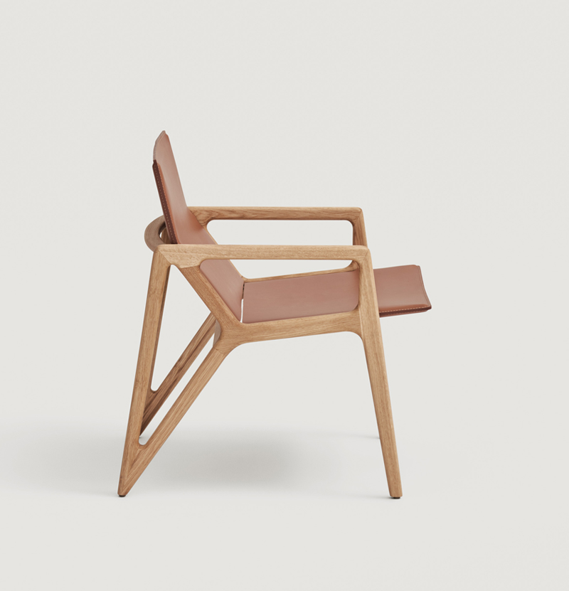 Silla con estructura de madera maciza de roble y tapizado tradicional de cuero premium